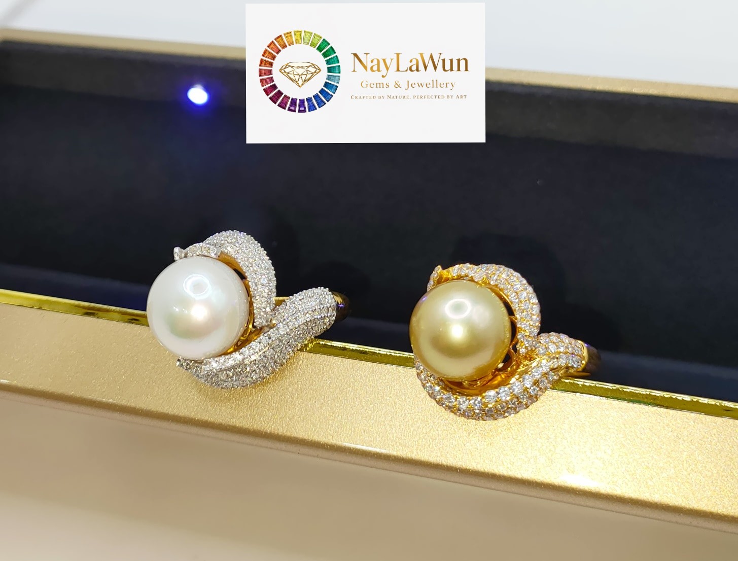 မြင်လိုက်ရရင်ကို လှရက်လွန်းတယ်လို့ချီးကျူးခံရစေမယ့် ရေငန်‌ပုလဲလေးတွေနဲ့စိန်တို့ပေါင်းစပ်ထားတဲ့ လက်စွပ်လေးတွေ