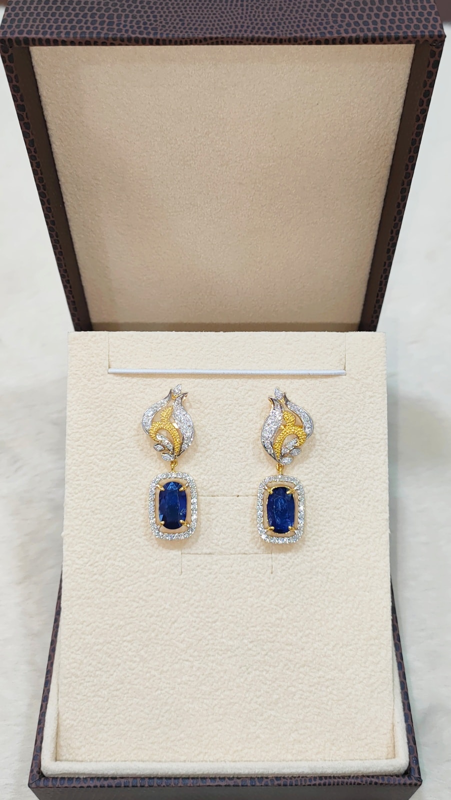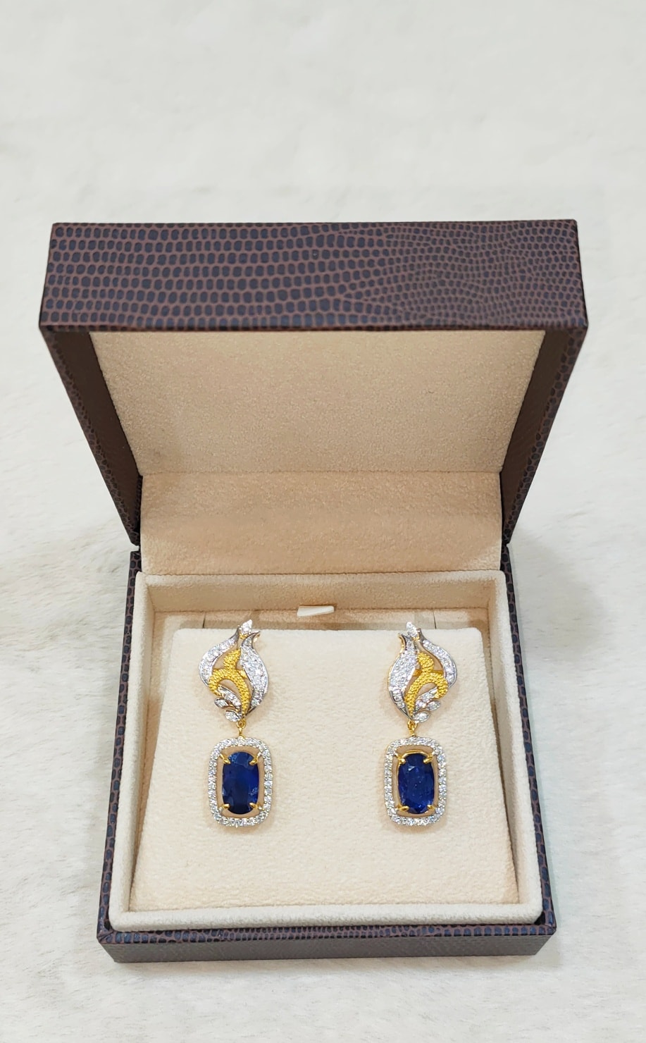 A beautiful, elegant beauty, a pair of natural sapphire and diamond earrings.