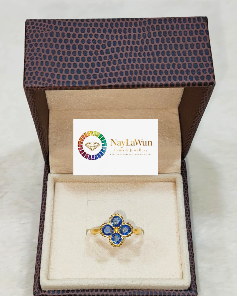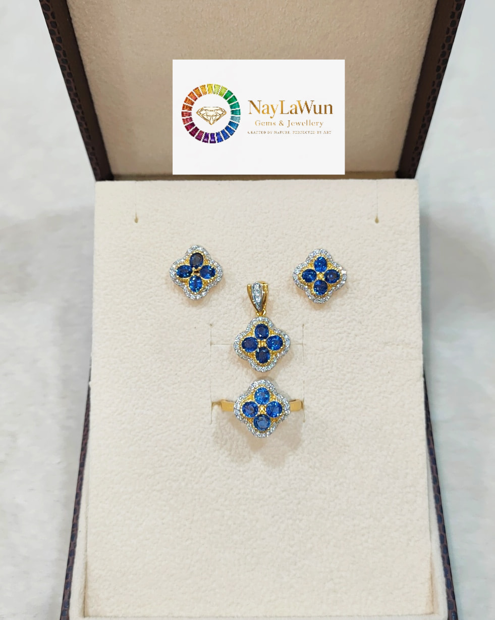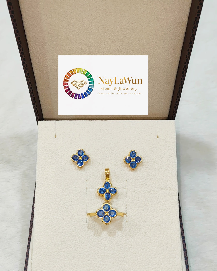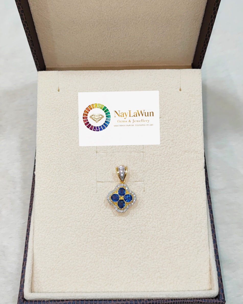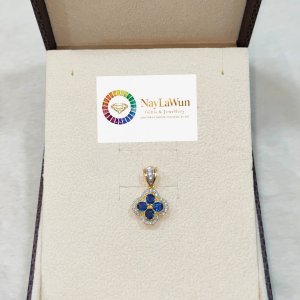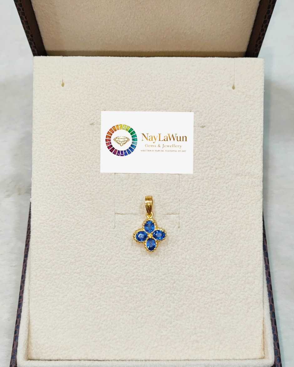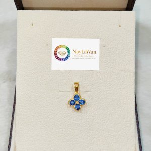 A clear, blue, and high-quality Mokot natural sapphire Clover EPR pendant to bring love and good luck.