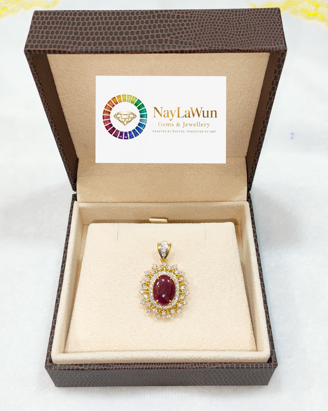 A new pendant design called Snow Ruby, which combines natural Mogok rubies and diamonds.