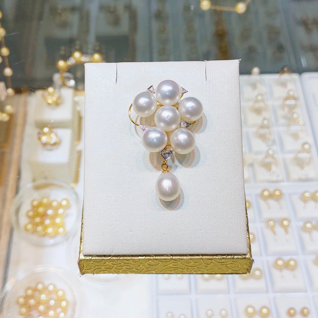 A white and pearly saltwater pearl brooch A white and pearly saltwater pearl brooch